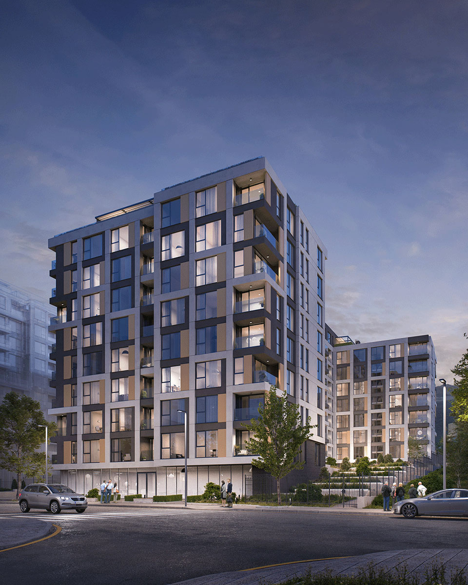 Entrance A rises eight stories, with the ground floor designated for office spaces with direct street access, and the upper seven floors housing residential units. Entrances B and C are nine stories high, with their first floors offering apartments with private gardens for a more personal connection to the outdoors. Entrance D, also nine stories, has a retail unit on the ground floor and residences above.