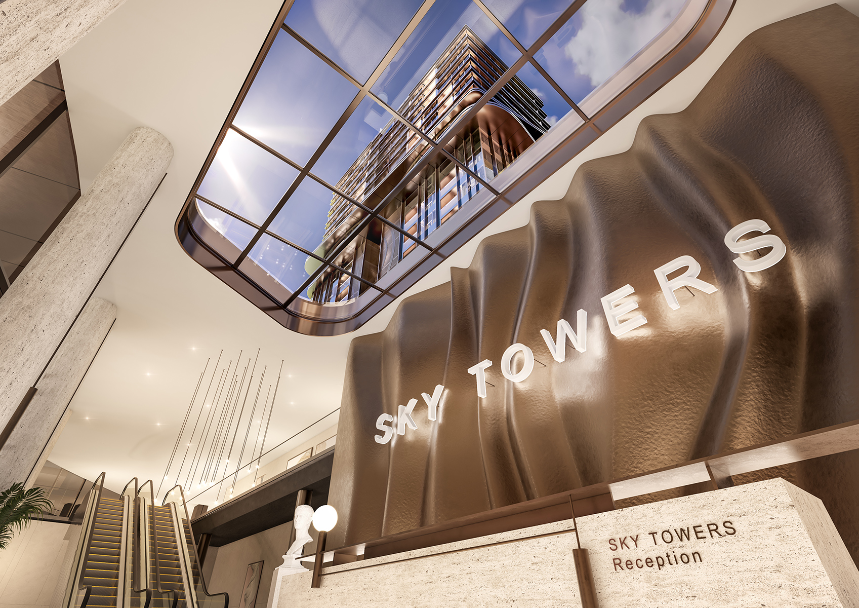 Positioned at the center of the site, the architectural composition of Sky Towers creates generous green spaces between and around the buildings. The spacing and proportions of the volumes ensure abundant natural light, effective ventilation, and visual comfort for residents.