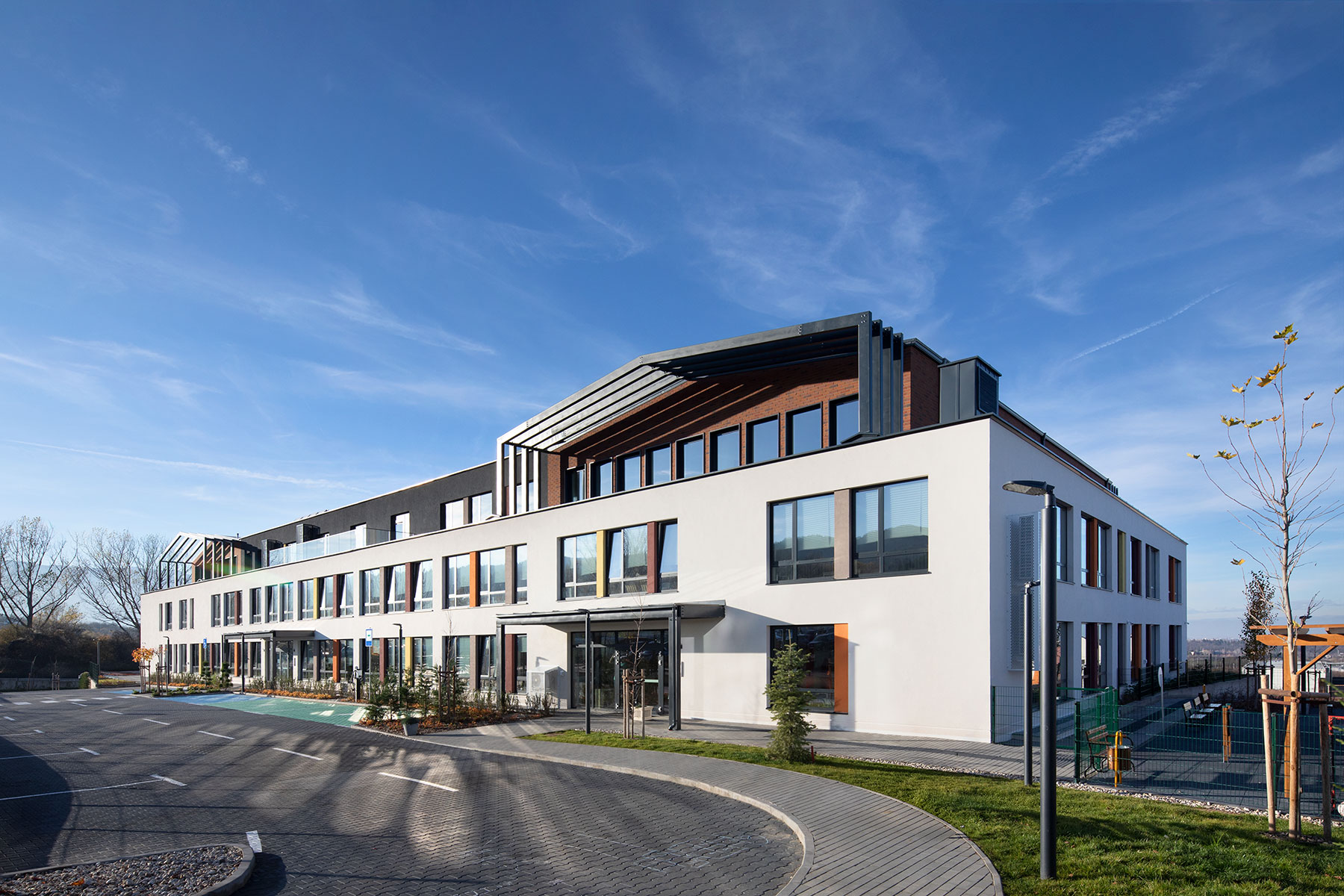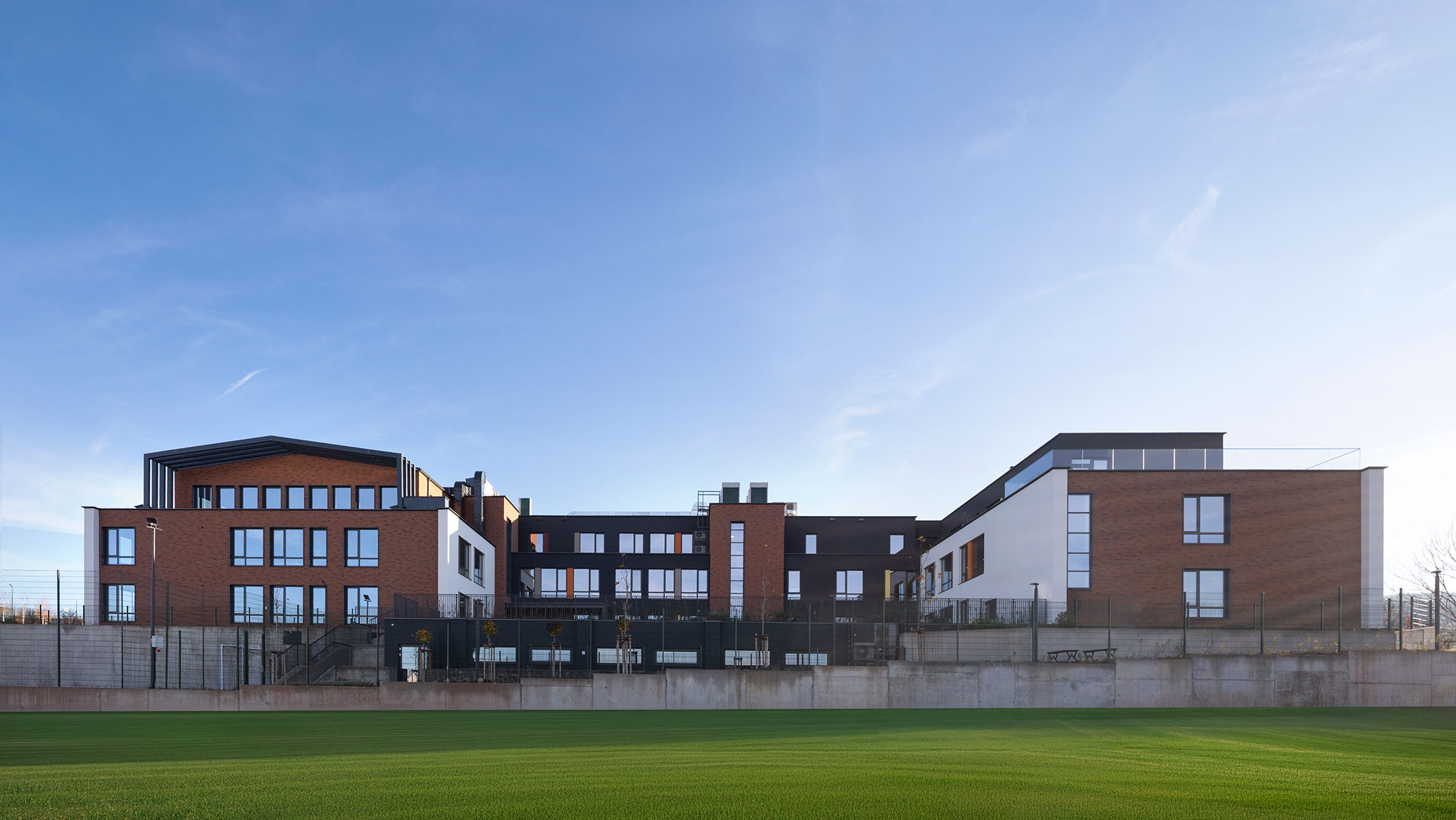 Учебният комплекс, проектиран от ИПА, е на три етажа и обединява детска градина и училище с начален, прогимназиален и гимназиален етап на обучение. Сред удобствата на кампуса са библиотечно-информационен център със зона за приложни изкуства, кабинети по музика, природни науки и технологии, конферентни зали, голям и малък физкултурен салон, театрална работилница, столова със собствена кухня и многофункционална зала за представления. Общите пространства са проектирани за споделена употреба и стимулират сътрудничество, творчество и социална активност.