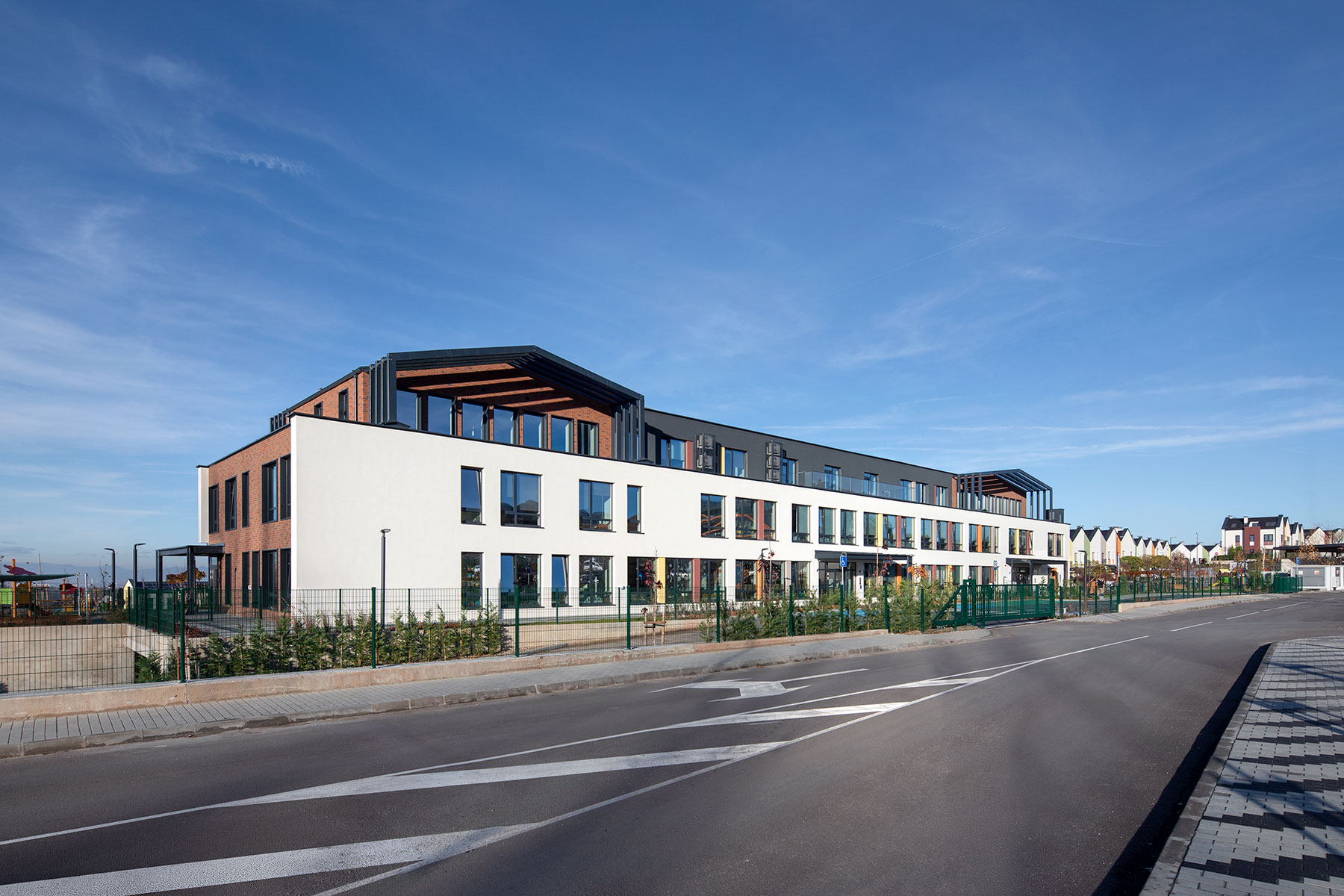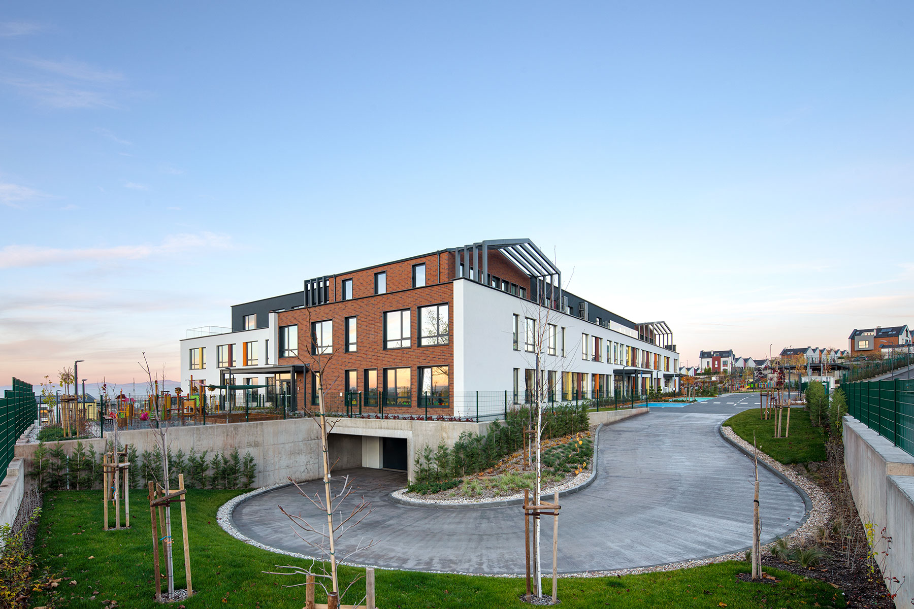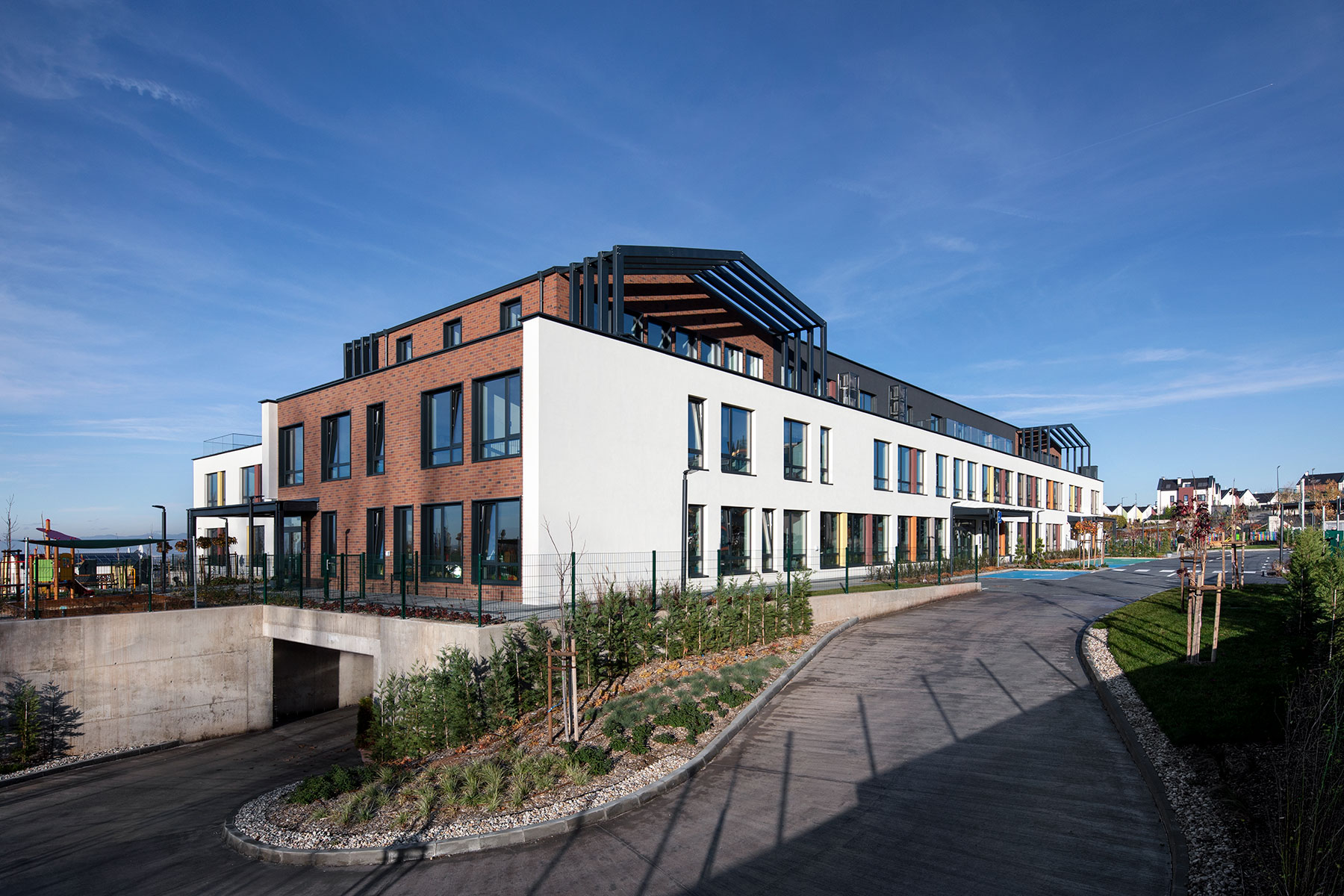Архитектурният екип постига това чрез ясно функционално зониране, прецизни връзки между отделните нива и споделени пространства, които позволяват ефективно използване на площите без компромис в сигурността и комфорта на децата. Важен акцент е оптималното използване на естествена светлина и ориентацията на помещенията, гарантиращи енергийна ефективност, оптимален комфорт и благоприятен микроклимат.