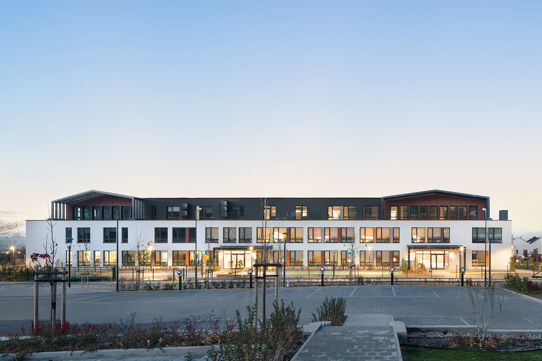 Капацитетът на училищния комплекс е 26 паралелки с по 20 ученици, общо 520 деца, а в детската градина – 2 групи с по 20 деца, или общо 40. За персонала са осигурени 24 паркоместа и над 120 велосипедни места, което насърчава устойчивата мобилност.