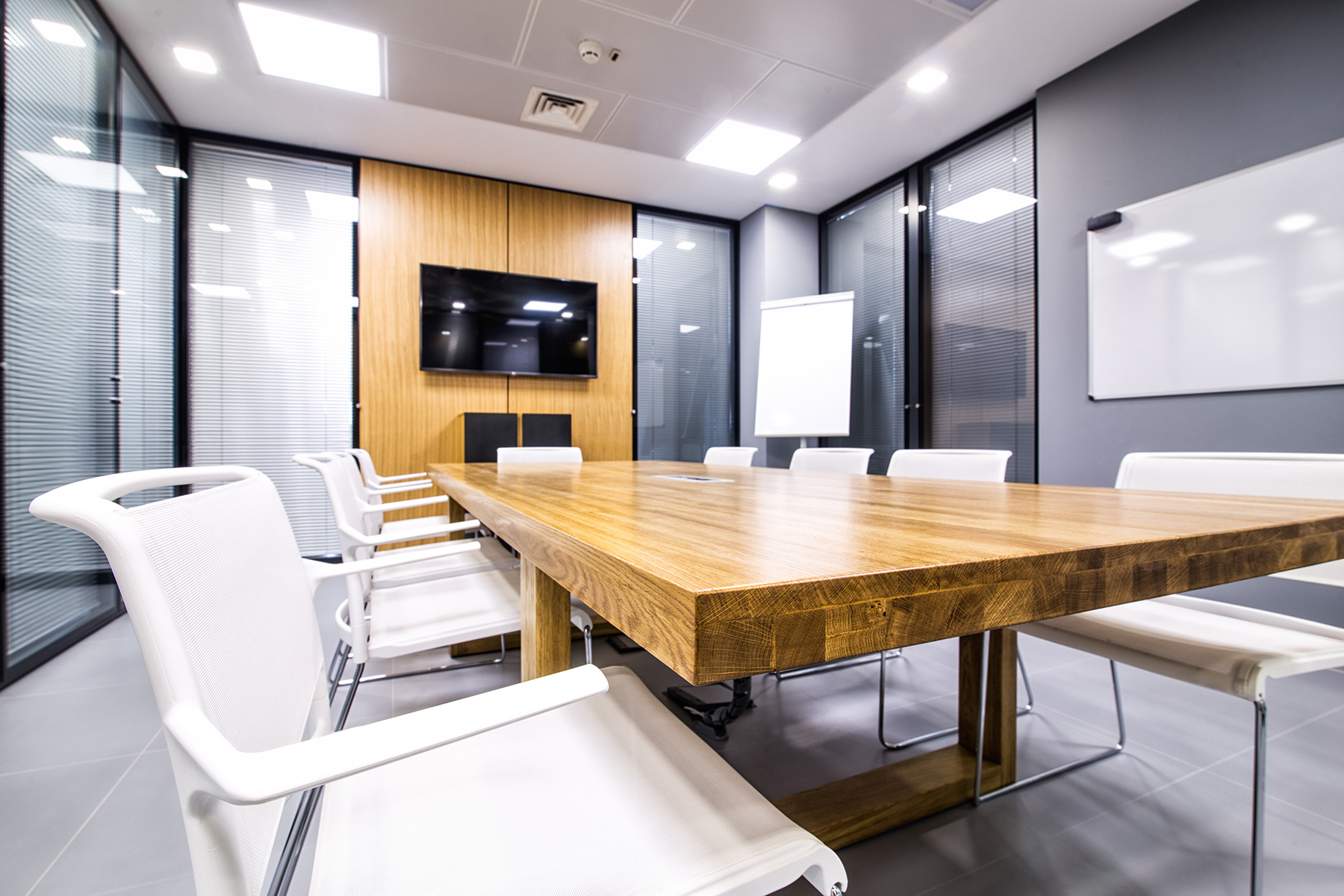 При мебелите отново се набляга на дърво, изчистени бели повърхности и метал в черен цвят. Класическият избор в тези елементи цели и постигането на класически дизайн, който винаги е актуален в корпоративния свят.