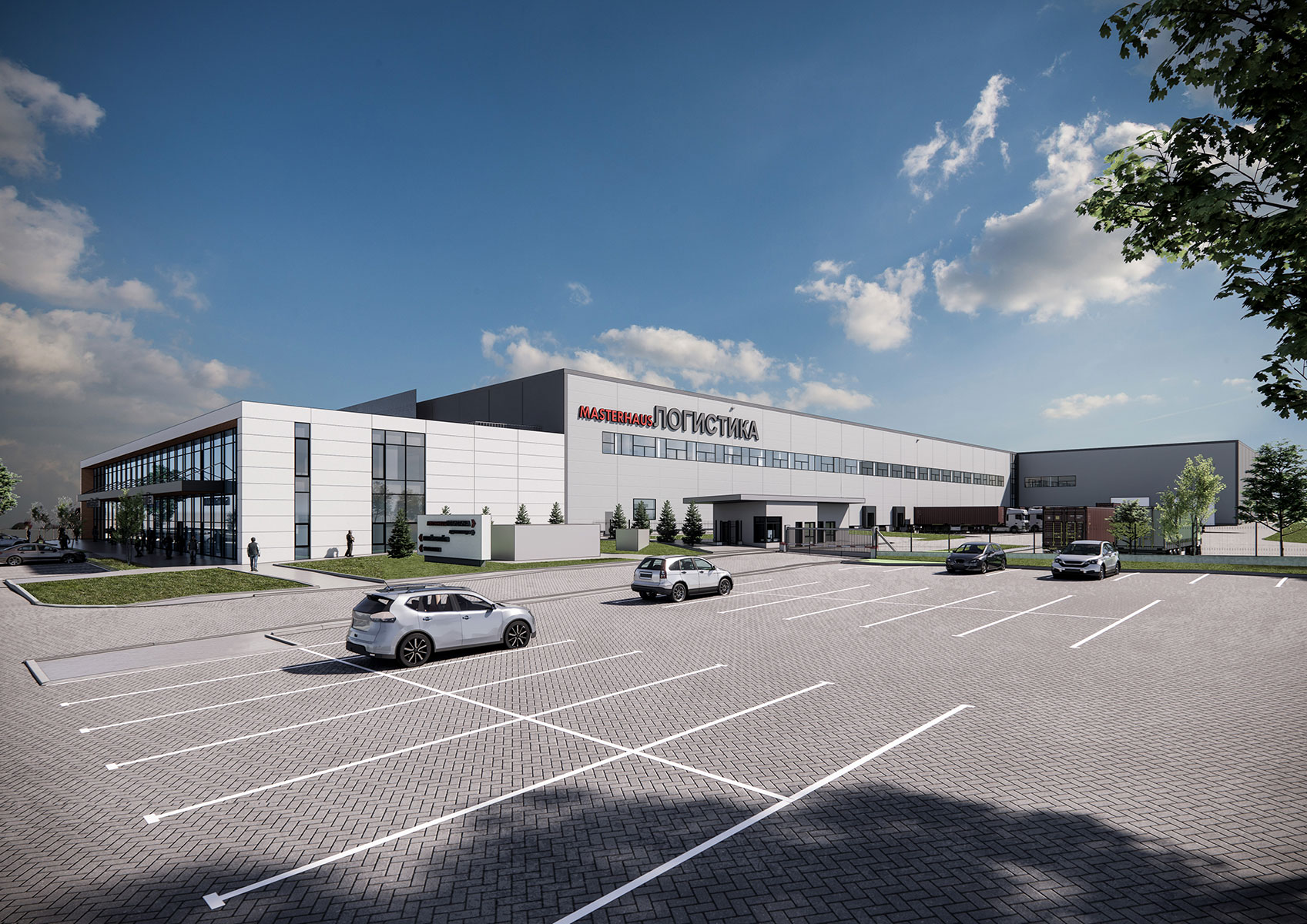 Логистичната база е разположена във вътрешната част на имота, в зона с контролиран достъп и контролно-пропускателен пункт на входа. Сградата представлява централен склад, обслужващ всички магазини на Masterhaus. За ефективността и гъвкавостта на логистичните операции са предвидени различни складови зони и товарни рампи за обслужване на големи и малки камиони със странично и задно товаро-разтоварване. Със светла височина от 13м и междуосие 11.2х22.6м сградата гарантира гъвкавост и ефективност при високостелажно складиране, свободно стоящи и палетизирани стоки, както и условия за бързооборотно товаро-разтоварване. Предвижда се междинно ниво /мецанин/ над товаро-разтоварните рампи и техническите помещения, където са разположени административните помещения, включително офиси за мениджъри, open-space помещение за екипи по логистика, онлайн търговия и клиентски поръчки, конферентна зала, стая за срещи, санитарни възли и помещения за почивка.